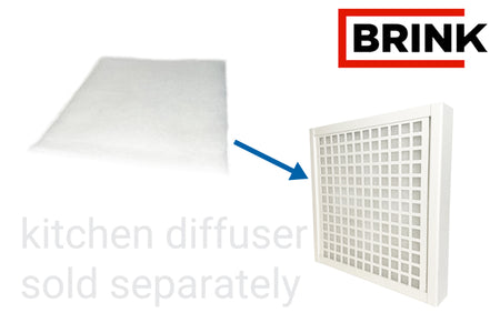 This Brink FLAIR Kitchen grill replacement filter should be used in combination with the Brink KITCHEN EXHAUST GRILL. The kitchen filter traps grease and cooking particles and keeps your ductwork clean. The kitchen filter should be changed every six months or as needed based on cooking frequency. The Brink kitchen exhaust should be located a minimum of 6' from the cooktop. To replace the kitchen filter, slide, then pull on the front grate of the KITCHEN EXHAUST grill.