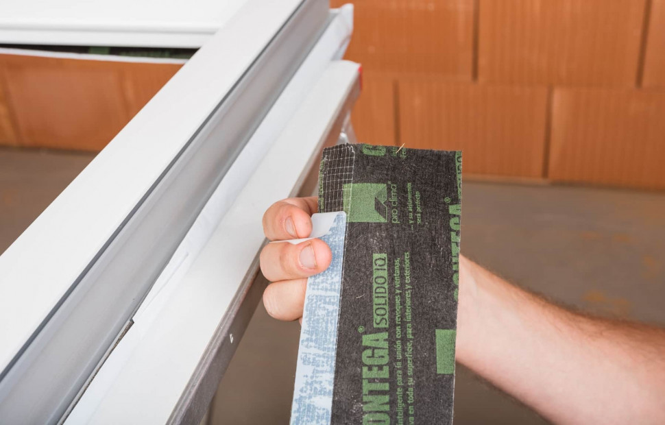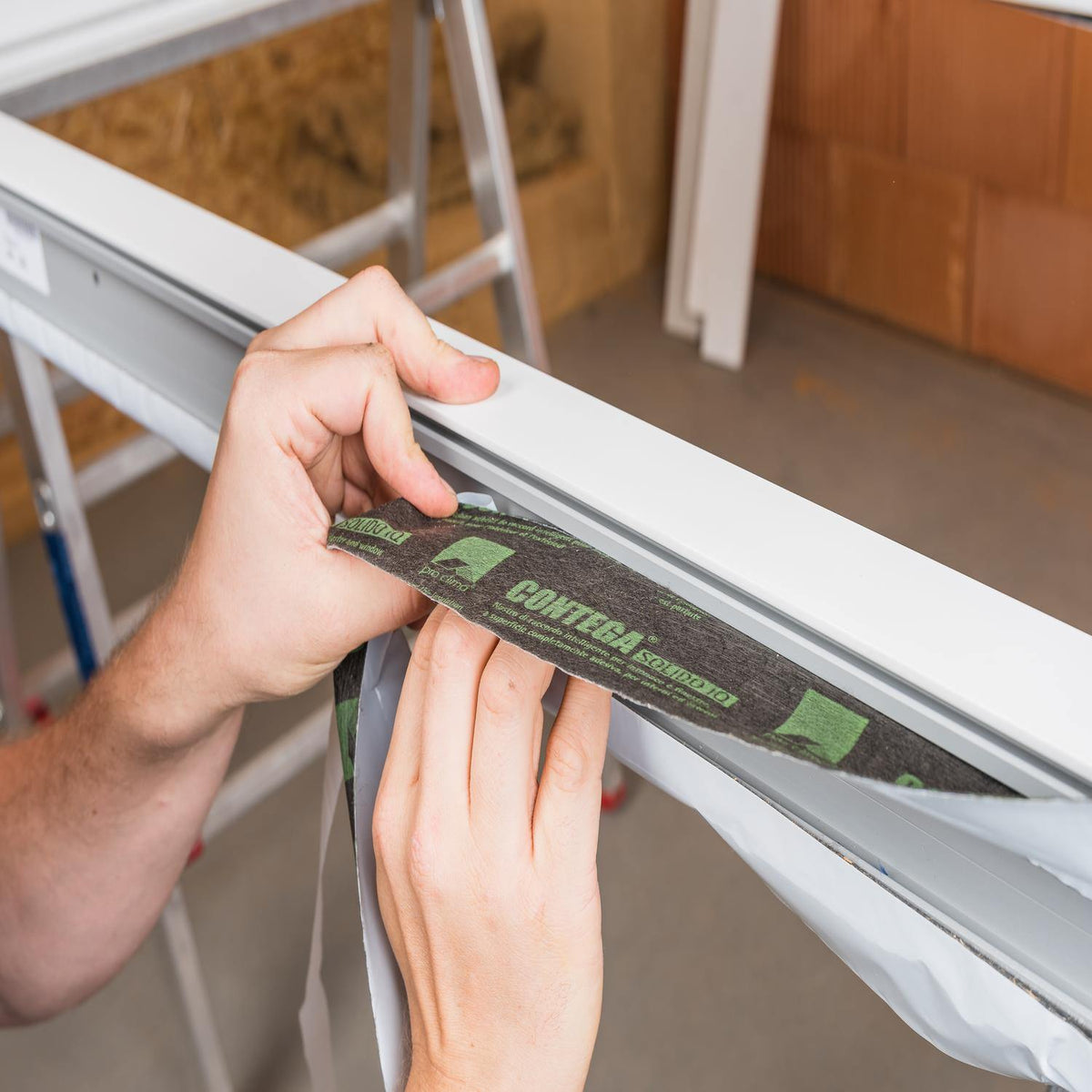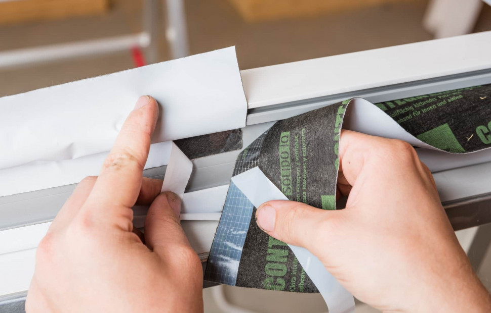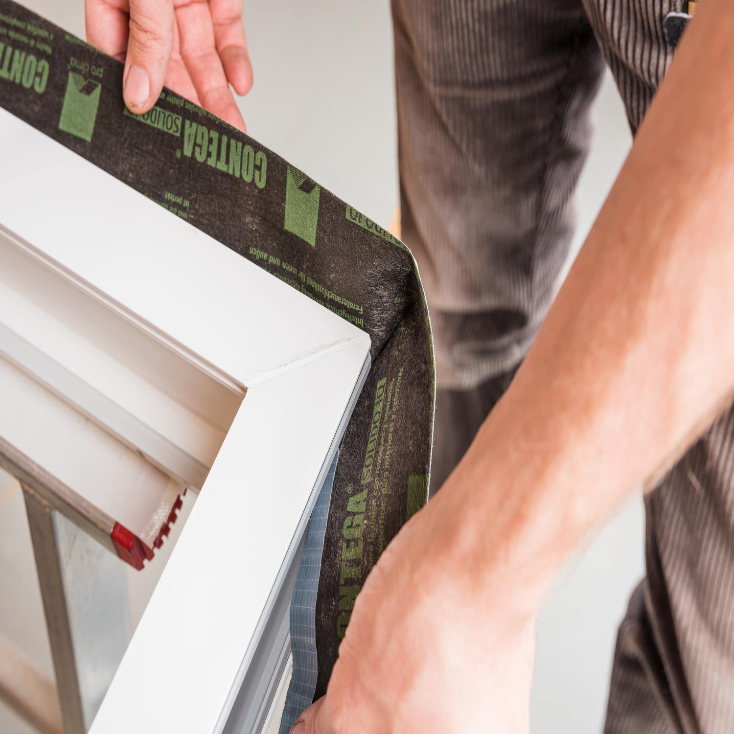 CONTEGA SOLIDO IQ-D® is a humidity-dependent window tape for interior OR exterior airtightness with smart vapor control with enhanced full-surface adhesive that negates the need for a primer in most situations. Similar to CONTEGA SOLIDO IQ but with an additional adhesive strip on the fleece side, allowing for a wider variety of installation methods.