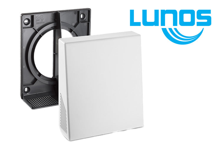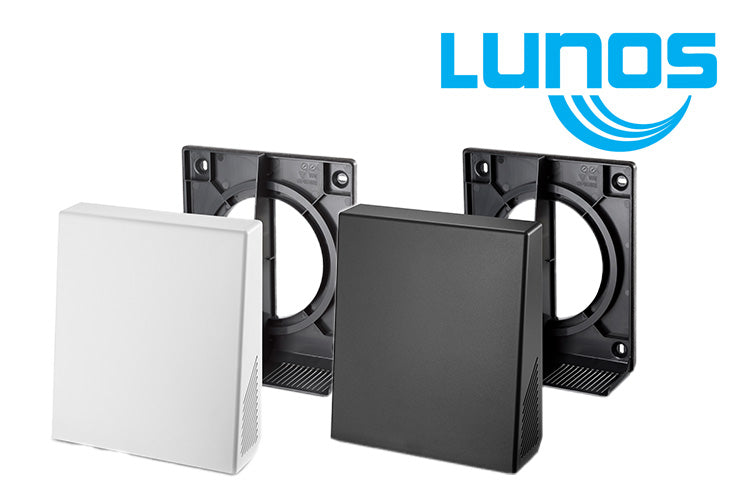 Option for the exterior cover that offers additional sound absorption for the Lunos eGO or Lunos e2. This exterior attachment reduces outside noise by an additional 6dB on top of the sound reduction inherent to each Lunos system: 42dB for full size fans / 38dB for Lunos e2 short.