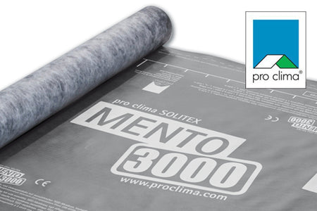 SOLITEX MENTO 3000 Double-Wide® is a 3-layer air tight, vapor-permeable house wrap that is an robust weather resistive barrier (WRB). It has an actively vapor open, monolithic layer of TEEE film that is extremely waterproof – and outperforms perforated/micro-porous WRBs, both, in outward drying potential, as well as airtightness.