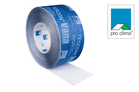 TESCON VANA® is an all-around airtight, vapor-open, SOLID acrylic adhesive tape. For interior or exterior air-sealing and waterproofing of membrane overlaps and sheathing joints.